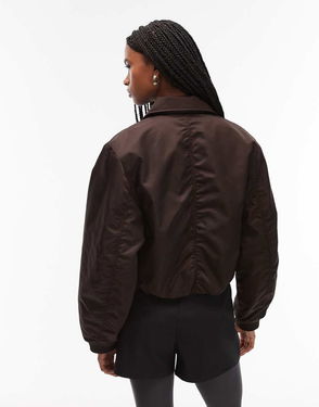 Zip Front Bomber Jacket With Padded Collar In Dark Brown