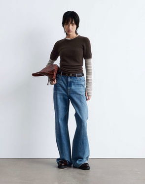 Structured Heavyweight Jersey Pull-on Trousers With Flare Leg In Brown