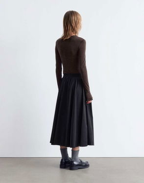 Pure Wool Lettuce Edge Long Sleeve Top With Thumbhole Detail In Brown
