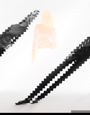 Soft Jersey Rib Long Sleeve Top In Mocha Brown