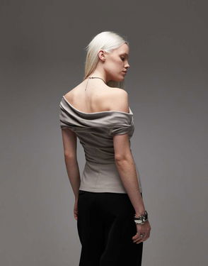 Shirt With Cinch Waist And Volume Sleeves In Brown
