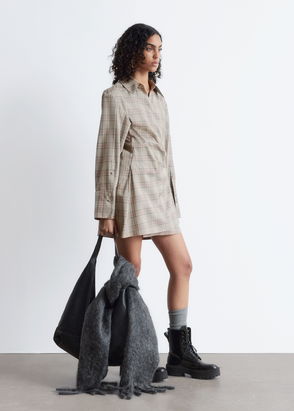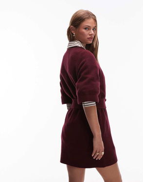 Knitted Belted Mini Dress With Wide Sleeves In Burgundy