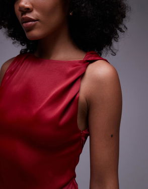 High Neck Long Sleeve Soft Twisted Midi Dress In Black