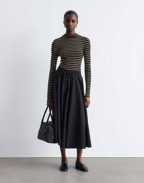 & Other Super Soft Wool Jersey Long Sleeve Top With Funnel Neck In Mono Stripes