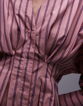 Shirt With Cinch Waist And Volume Sleeves In Pink And Blue Stripes