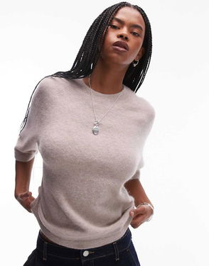 Alpaca Short Sleeve Knitted Jumper In Light Mole