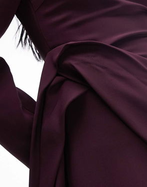 Stretch Mini Dress With Asymmetric Draped Train Detail In Burgundy