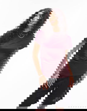 Long Line Jersey T-shirt With Asymmetric Drape Detail In Burgundy Wine