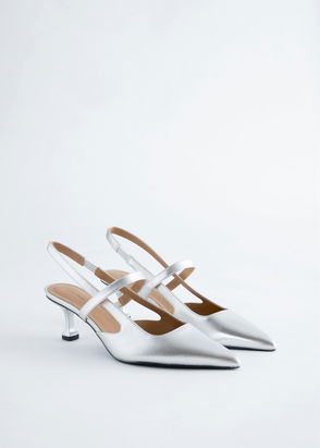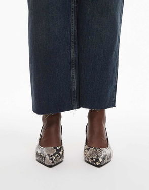 Leather Slingback Wedge Pump Heel In Grey Snake Print