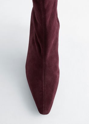 Suede Pointed Toe Ankle Boots In Dark Brown