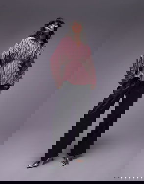 Shirt With Cinch Waist And Volume Sleeves In Pink And Blue Stripes