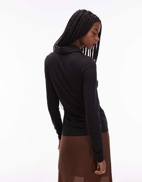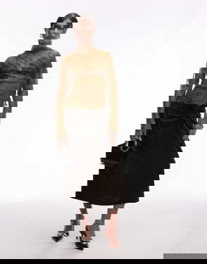 Stretch Lace Long Sleeve Top With Ruche Side In Brown