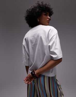 Supersoft Knitted Pointelle T-shirt With Fluted Edges In White