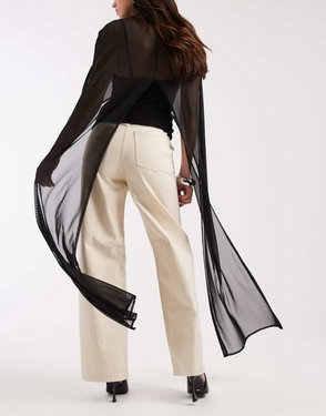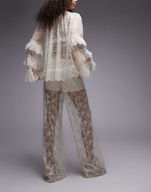 Sheer Lace Pants With Scalloped Hem And Fitted Micro Shorts In Off White