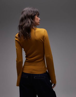 Mohair And Wool Knitted Slim Fit Top With Polo Collar In Yellow Beige