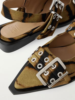 Embellished Zebra-print Brushed Cotton-blend Point-toe Slingback Flats