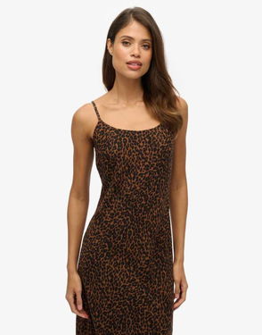 Bias Cut Maxi Slip Dress In Leona Leopard