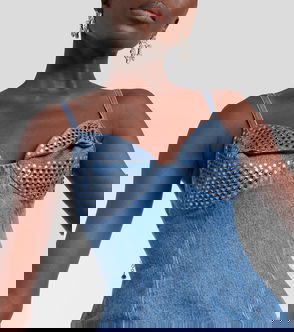 Crystal-embellished Denim Minidress