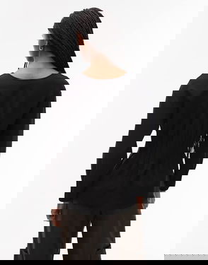 Merino Wool Knitted Semi Sheer Long Sleeve Top In Black