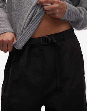 Tech Nylon Baggy Trousers With Zip Hem Detail In Black