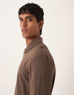 Merino Wool Knitted Long Sleeve Polo Shirt In Brown