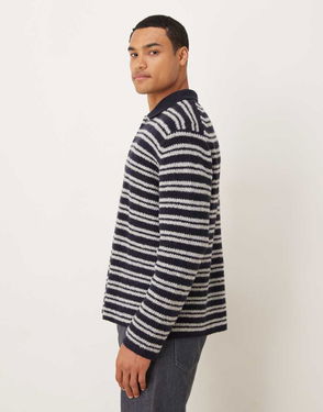 Half Button Oversized Polo Jumper In Multi Stripes Pattern