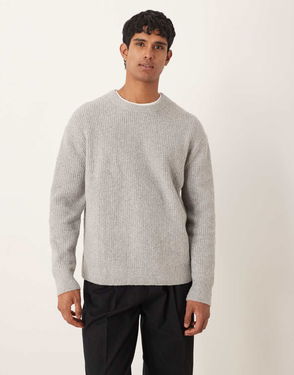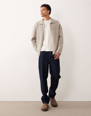 Wool Chunky Knitted Rib Cardigan With Two-way Zip In Navy Blue