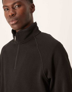 Textured Fleece Half Zip With Raglan Sleeves In Black