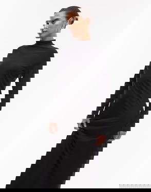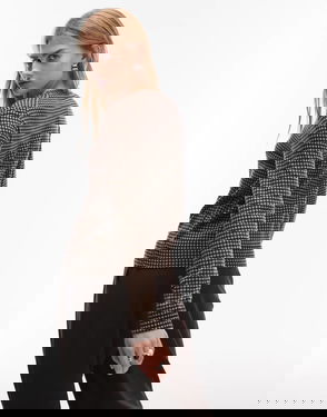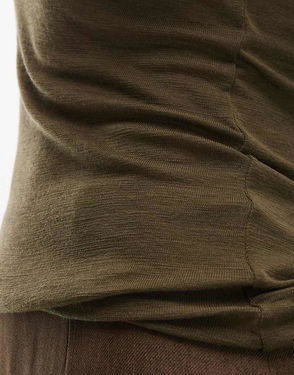 Merino Wool Knitted Semi Sheer Turtle Neck Top In Dark Green
