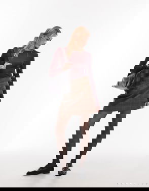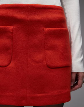 Wool Rich Mini Skirt With Front Pockets In Orange