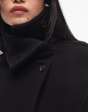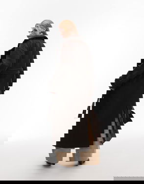 Wool Maxi Belted Trench Coat With Side Splits In Black