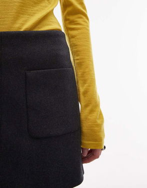 Wool Rich Mini Skirt With Front Pockets In Dark Grey
