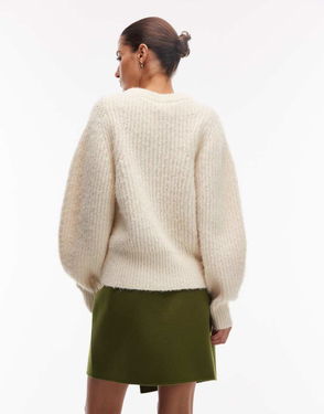 Wool Rich Mini Skirt With Front Button Wrap Detail In Khaki