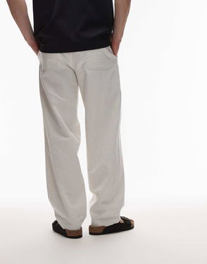Cropped Linen Trousers With Drawstring Waist In Light Beige