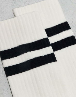 2 Pack Stripe Sport Socks In Off White And Dark Blue