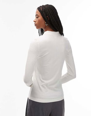 Stretch Jersey Rib Long Sleeve Polo Top In White