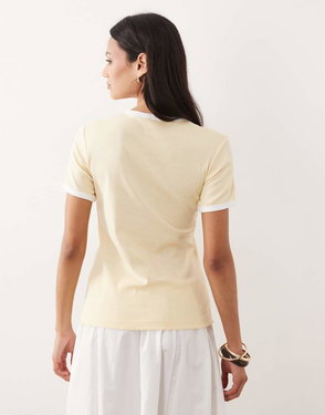 Slim Fit Ribbed T-shirt With Trim In Butter Yellow