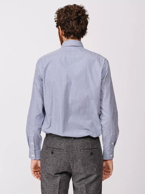 Hardy Cotton Regular Fit Cutaway Collar Stripe Shirt, Dark Blue