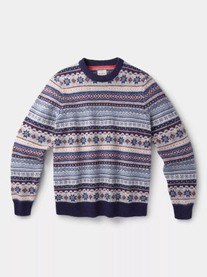 Fairisle Crew Neck Wool Jumper, Navy/Red