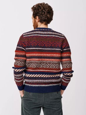 Fairisle Crew Neck Wool Jumper, Navy/Red