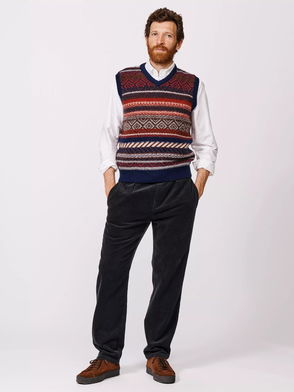 Fairisle Slipover Sleeveless Jumper, Navy/Red