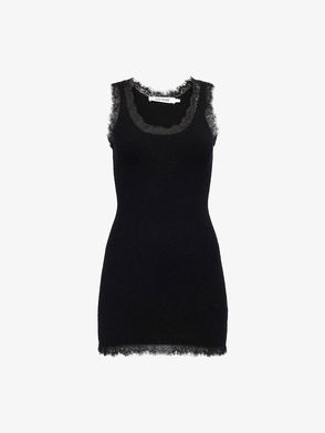 Lace-Embroidery Ribbed Cashmere And Cotton Mini Dress