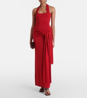 Wisp Draped Stretch-Woven Maxi Dress