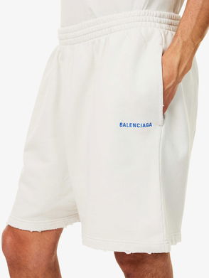 Back Distressed Logo Cotton Shorts