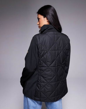 Oversized Quilted Jacket With Fleece Sleeves In Black & Beige