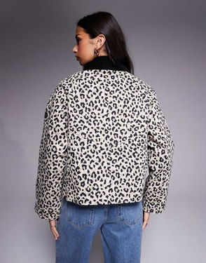 Leopard Zip Thru Jacket With Contrast Cord Collar In Beige