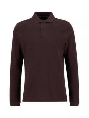 Cotton Regular Fit Long Sleeve Tartan Pique Polo Shirt, Dark Oak