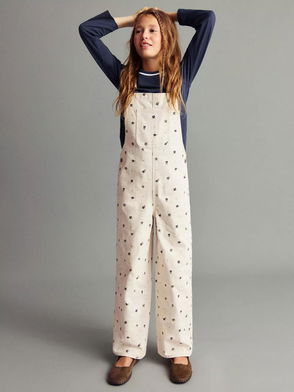 Kids' Hilary Cotton Floral Dungarees, Light Beige
