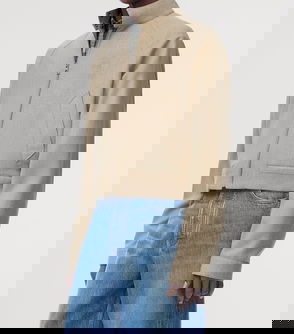Band-Collar Two-Buttoned-Pockets Regular-Fit Cotton Jacket