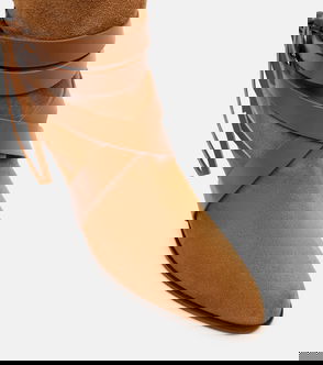 Pixee Suede Chisel Toe Western Ankle Boots, Tan